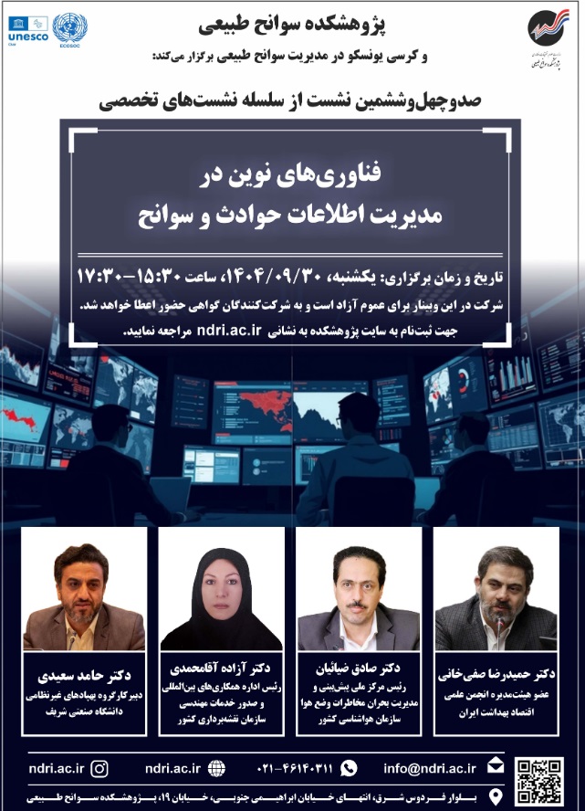 نشست فن آوری نوین در مدیریت اطلاعات حوادث وسوانح ۳۰ آذر ۱۴۰۴ | ۱۲:۰۴ کد : ۵۷۱۴۹ اطلاعیه ارسال به دیگران نام شما ایمیل شما ایمیل دریافتکننده ارسال انصراف تعداد بازدید:۱۹۴ دعوتنامه نشست فن آوری نوین در مدیریت اطلاعات حوادث وسوانح